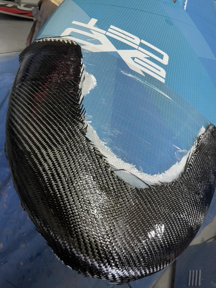 C’est Exactement ce que propose Sabrina dans son atelier à Windsurf-Attitude : réparations de flotteurs à Barcarès. Des protections de nez sur mesure, de la répa d’urgence ou encore le rattrapage de vos vilains pâtés d’Epoxy étalés à la hâte : elle peut tout faire.